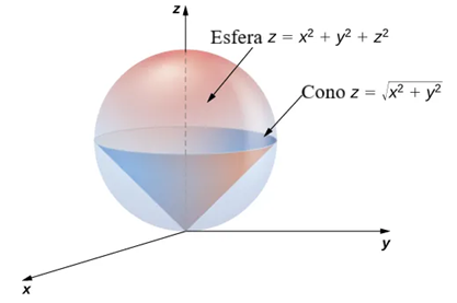 a. Utilice las fórmulas de conversión para escribir las ecuaciones de la esfera y el cono en coordenadas esféricas.