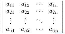 donde la suma es sobre todas las permutaciones (i1, i2, . . ., in) de (1, 2, . . ., n) y la elección de + o − en cada término depende únicamente de la permutación asociada con ese término.